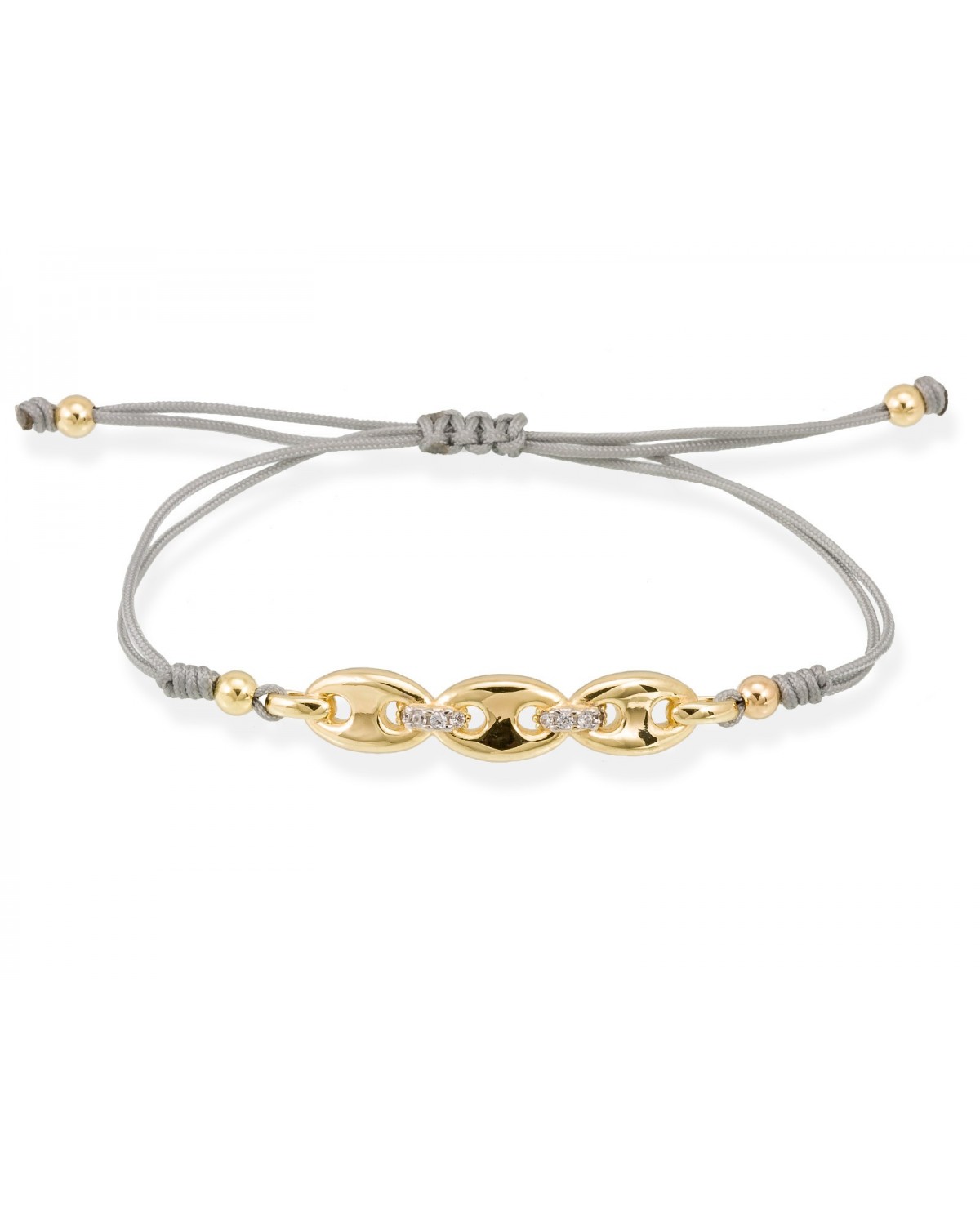 Pulsera de plata de primera ley (925) chapada en oro amarillo de 18kt y cristal de Strass facetado color triple verde. (largo: 51 cm.)