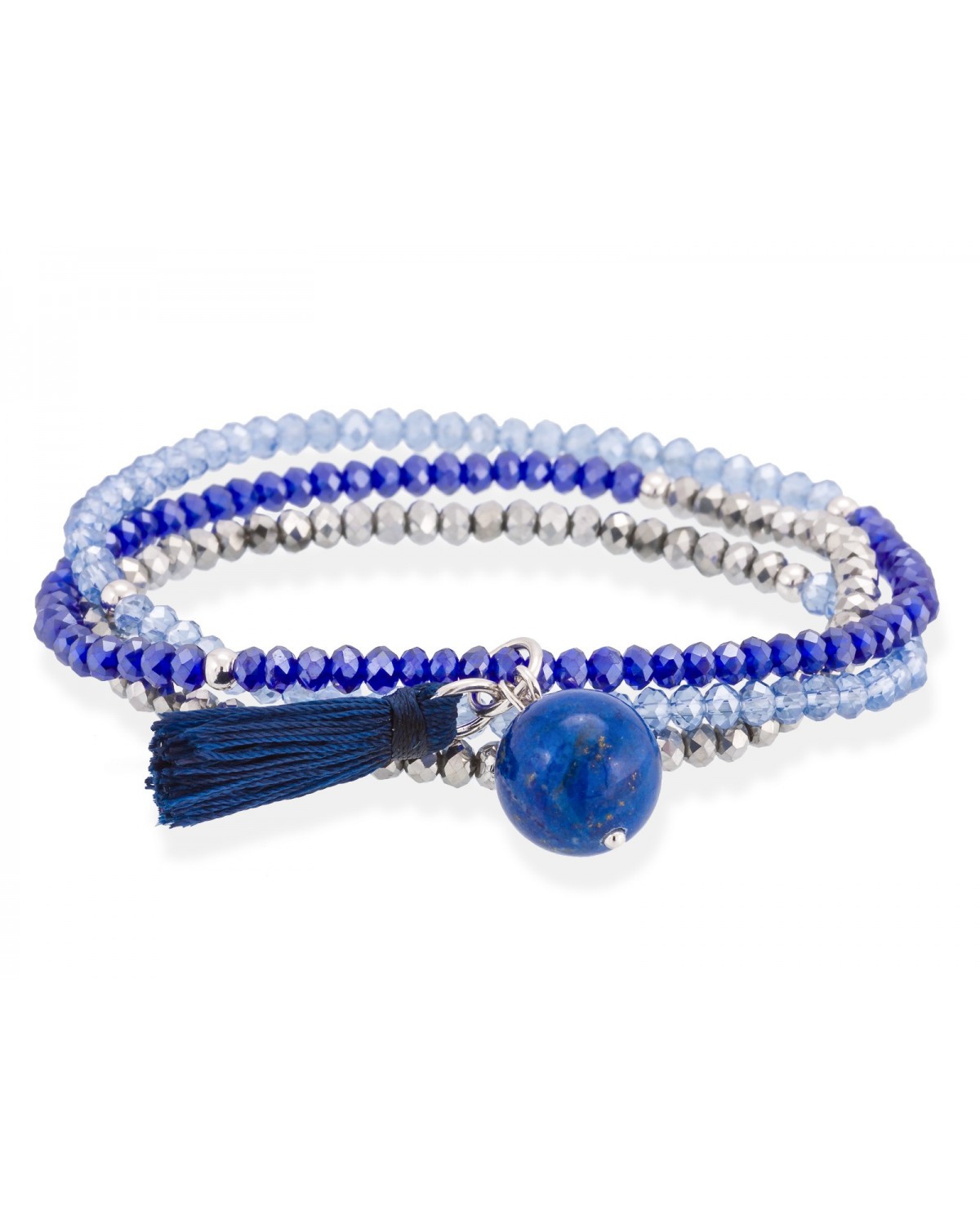 Pulsera de plata de primera ley (925) chapada en oro rosa de 18kt con cristal de Strass facetado color azul cerceta y apatito. (largo: 51 cm.)