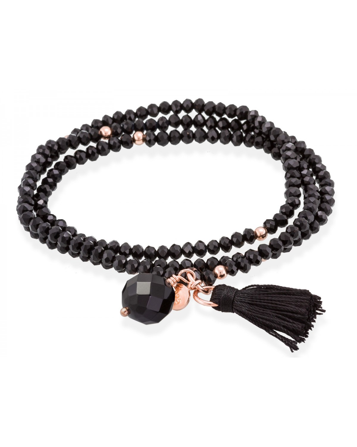 Pulsera de plata de primera ley (925) chapada en oro rosa de 18kt con cristal de Strass facetado negro y ónix negro. (largo: 51 cm.)